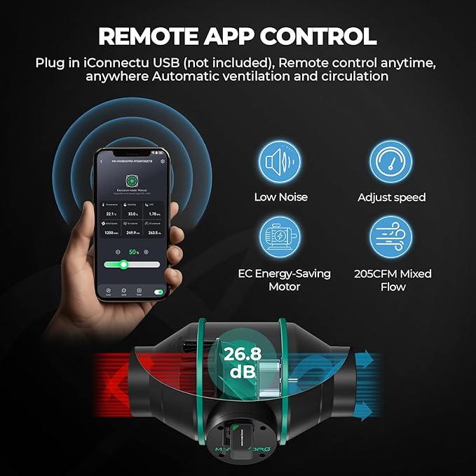 - ✩✩【2025 New Upgraded Smart Ventilation】✩✩This ventilation kit has been completely upgraded. Simply purchase our Iconconnect USB and sensor in store and connect to the Mars Hydro app via Bluetooth/WiFi to intelligently monitor and set temperature and humidity, achieving automatic ventilation and circulation.