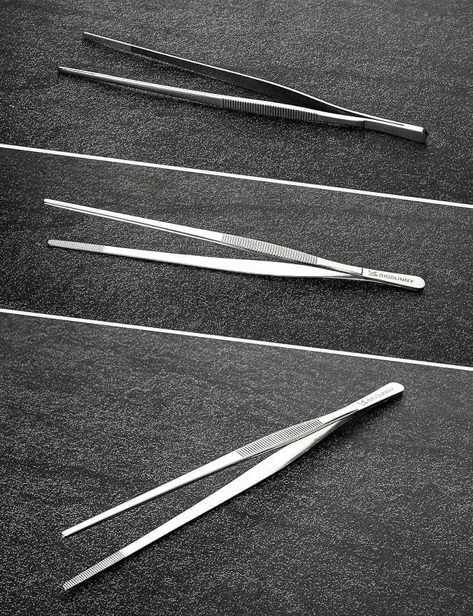- Measures 8.5inch(21.6cm), these tweezers tongs are made of 100% stainless steel, rust proof, not easy to deform and built to last