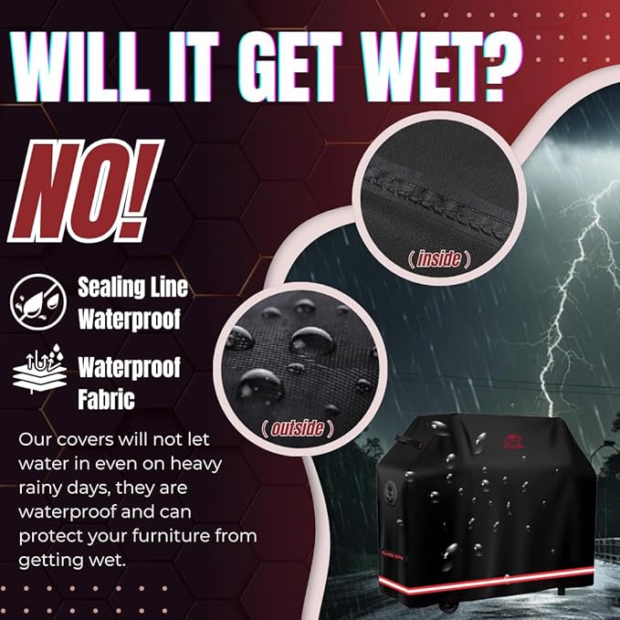 - 【Protection Function】- Waterproof, dustproof, rip-resistant, UV resistant. New high-quality fabric makes the grill cover less susceptible to weather conditions. Fits most gas grills up to 68-inch width, fits the brand as Weber, Blackstone, Char-Broil, etc.