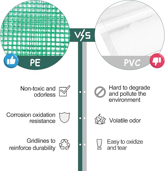 - Eco-friendly PE Cover: Small greenhouse for outdoors with PE cover is odorless, non-toxic, low-temperature resistance, acid, and alkali corrosion resistance. Let suitable heat in and protect the seedlings from being burnt as the PVC. Can be used for several years.