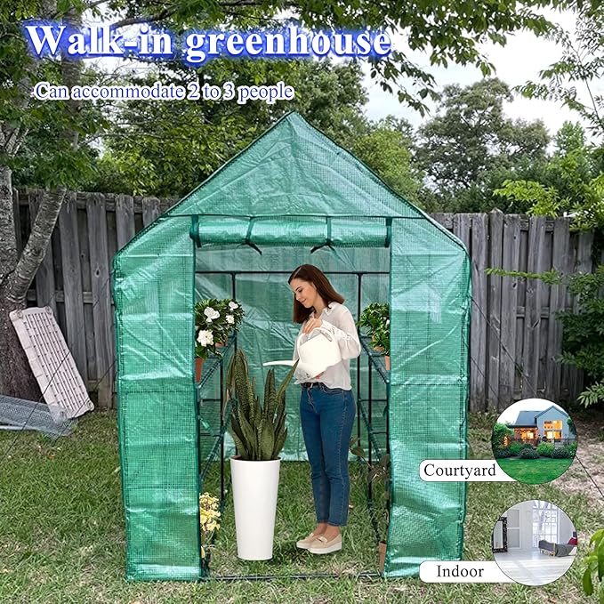 - Keep Ideal Heat and Humidity: The 2 Windows and Roll-Up Zipper Door provide good ventilation for the portable walkin greenhouse, to create desirable heat and humidity for plants to grow healthily and extend the growing season!