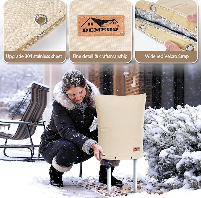 - Avoid High Repair Costs : DEMEDO insulated cover protects your backflow pipe systems from freezing, bursting and blowouts due to the severe weather conditions like snow, rain, wind and sun exposure heating. Avoid expensive cost for valve replacing and repair every year.