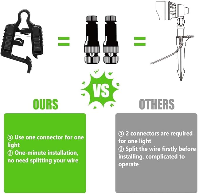 - 【12 Pack Connectors for 12 Lights】Innovative design, one connector for one landscaping light, no need using 2 pieces for connecting one light like others. Less money for covering more lights, save your money.