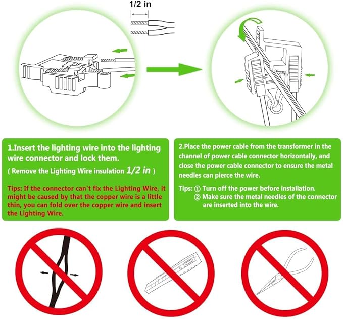- 【Easy Installation】Super easy to install, locks the wire without cutting, crimping or splicing, no tools required. Quickly install the connectors with your landscape lights within 1 minutes.
