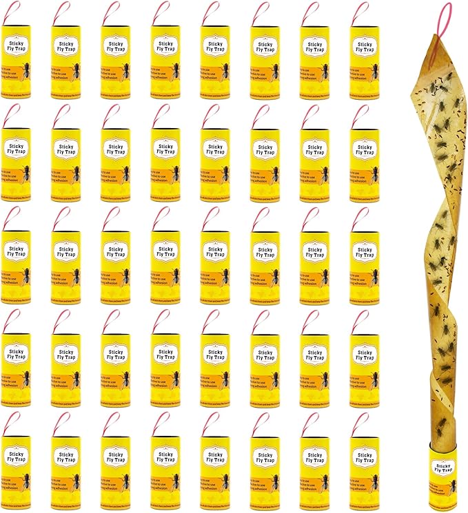 Stingmon 40 Pack Sticky Fly Trap Indoor, Fly Traps Outdoor Hanging, Fruit Fly Trap, Fly Strips Fly Tape Fly Killer Fly Catcher Fly Paper Fly Ribbon, Flying Insect Trap for Bug, Gnat, Insect, Mosquito