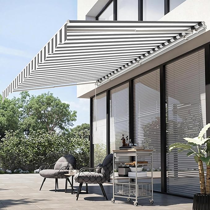 MCombo 13.2x7.8 Feet Manual Retractable Patio Door Window Awning Sunshade Shelter Outdoor Canopy,1308 (Grey with White Stripes, 13.2'(L) x 7.8'(W))