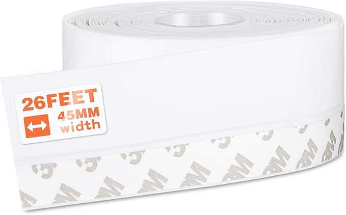 26 Feet Silicone Seal Strip, Weather Stripping Seal Tape for Door, Window & Shower Glass Gaps (White, 45MM)