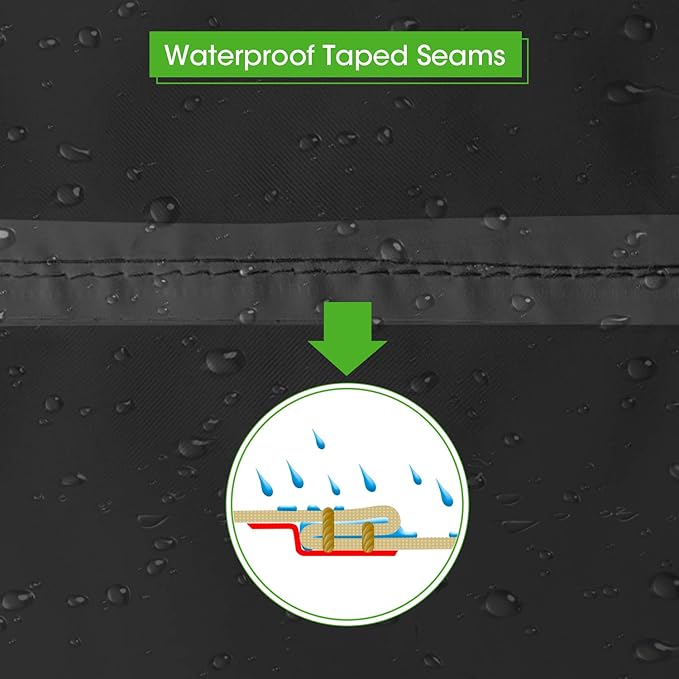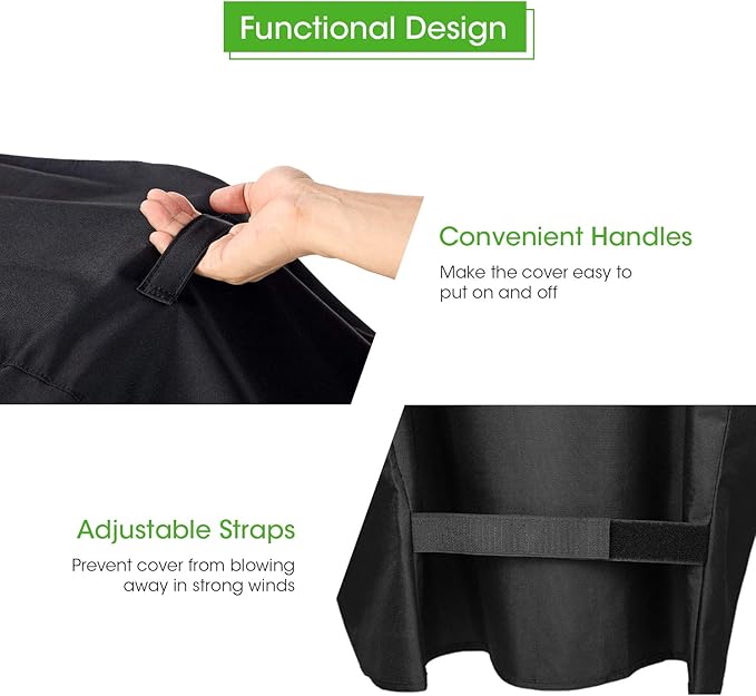 - Convenient Handles and Adjustable Straps: Two lifting handles make it easy to put on or remove the cover, and also allow for convenient hanging when not in use. Two fastening straps at the bottom allow you to adjust the cover for a secure fit and keep it in place, even on windy days