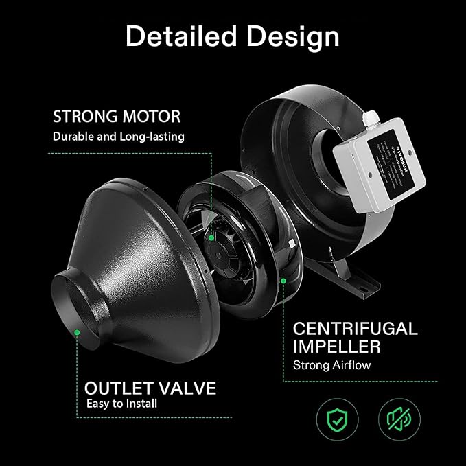 - Effective Ventilation: Heavy hitting blower with a fan speed of 2500 RPM; Puts out only 49 dB noise level; Moves air through your target location efficiently for optimal ventilation; 1050+ RC 48 Australian virgin charcoal bed; The air aluminum ducting featured with the flexible length for exhaust fan blower or inline fan