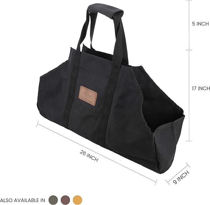 - 🔥STYLE & DIMENSION: The large firewood bag holder has 26”(L) x 9”(W) x 17”(H). Available in four different colors; tan, brown, olive and black and 4 different styles. Completely collapsible and flat foldable design for simple space-saving storage or hang by the straps when not in use