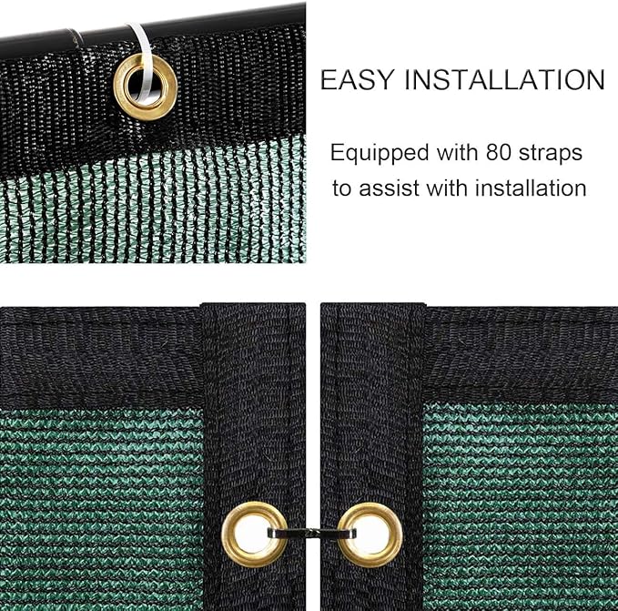 - Easy to install: Use zip ties to fasten the grommets to the fence in each side. Our fence screen is equipped with denser grommets and 80 straps to keep the fence closer to your fence.