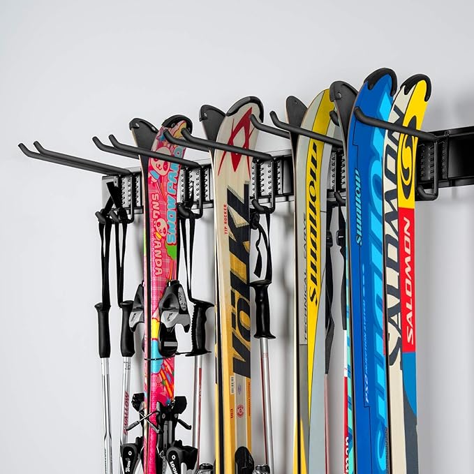 - Multi-function Wall Mount Tool Organizer: The garage wall organizer provides superb organization for garden tools, shovels, rakes, brooms, mops, extension cords, hoses, and other sporting equipment: helmets, ice skates, hockey sticks, skis etc