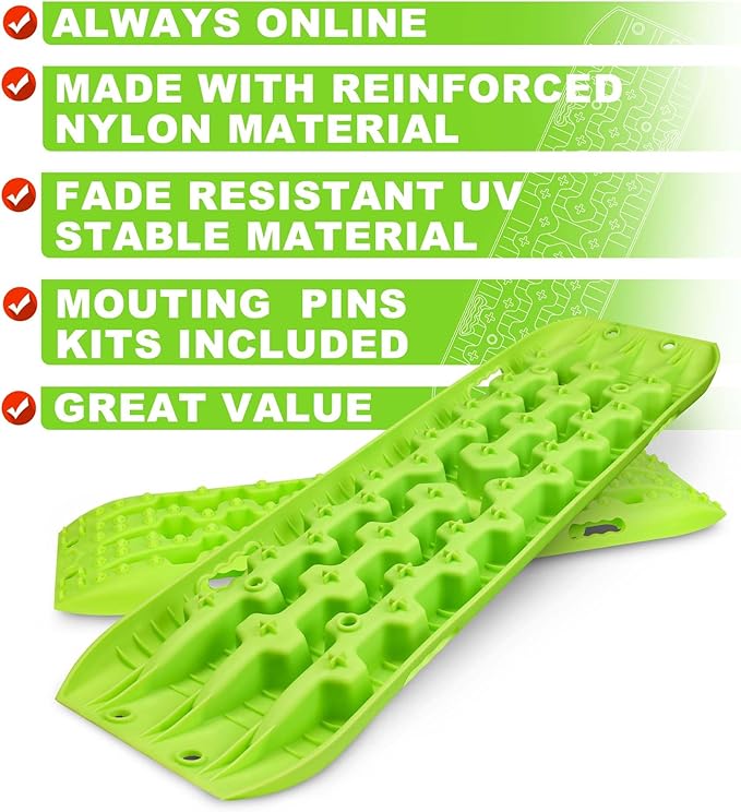- Raised tracks help prevent vehicle tires from spinning on snow, ice, mud, or sand - The ergonomic handles are designed for easy transporting.Cleats sink their teeth into tire tread and terrain under your 4WD vehicle to prevent it from slipping back into mud, snow, or sand and make vehicle recovery quick and easy