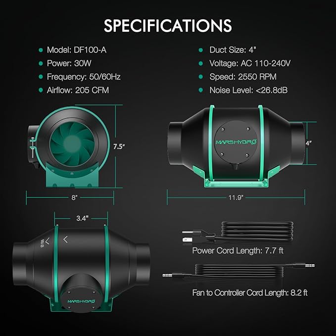 - ✩✩【2025 New Upgraded Smart Ventilation】✩✩This ventilation kit has been completely upgraded. Simply purchase our Iconconnect USB and sensor in store and connect to the Mars Hydro app via Bluetooth/WiFi to intelligently monitor and set temperature and humidity, achieving automatic ventilation and circulation.