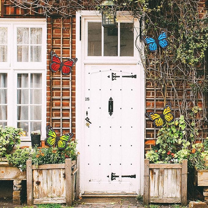 - Package Include: Set of 4 metal butterflies (blue, green, red, yellow). Butterfly size: 9.8''(L)x6.8''(W)