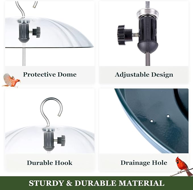 - ADJUSTABLE DESIGN & DURABLE CONSTRUCTION: Smart design to adjust the height to control the size of visiting birds. The rust-proof metal base can maintain a better balance even in the windy weather