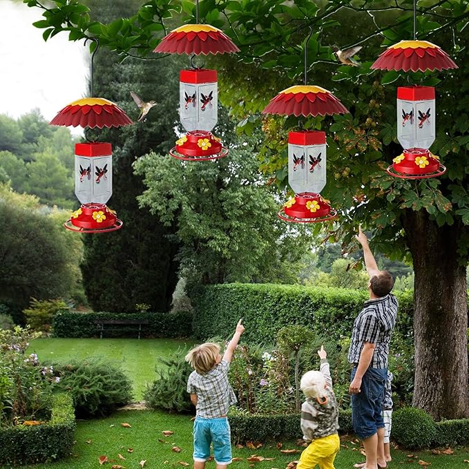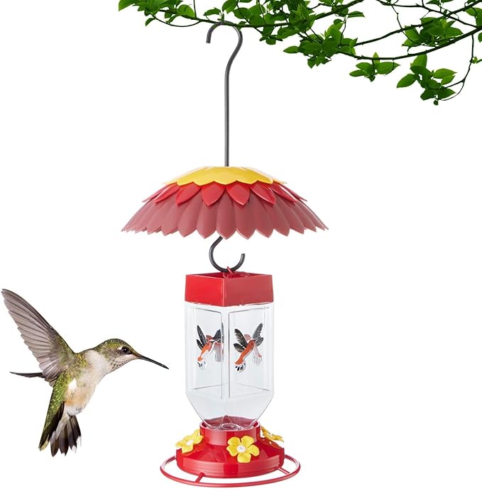 - ✔[ATTRACT HUMMINGBIRD] The rich color combination acts as a beacon for hummingbirds, inviting them to your feeder. Witness the joy of birds fluttering their wings as they carve nectar, with the feeder's baffle gently swinging around them.