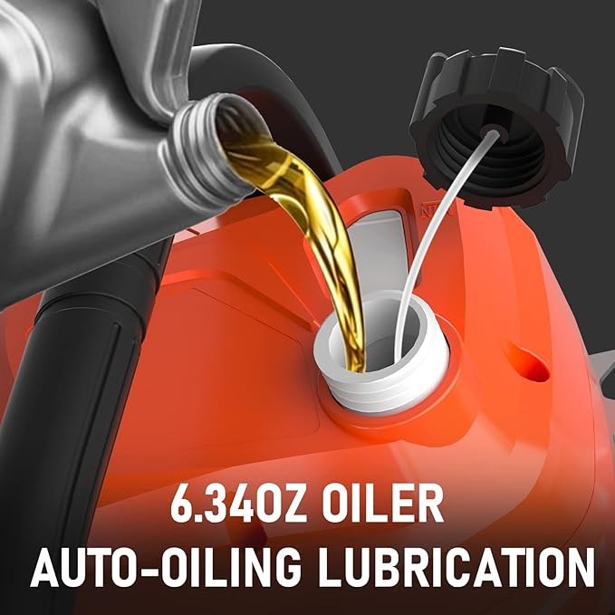 - 【Auto Oiling System】The power chain saws is equipped with a 300ml oil tank and a transparent oil window. Oiling system lubricates itself to keep the chain lubricated and more durable.