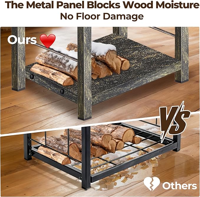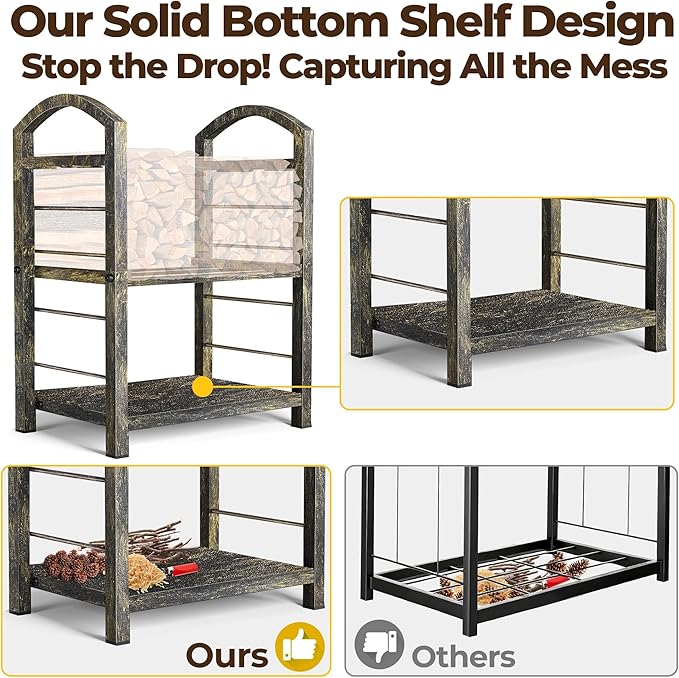 - QUALITY & LARGE CAPACITY: Designed with 2 storage shelves. The log rack frame measures 29.1inx15.7inx11.8in, made from durable steel square tubing and powder coated finish to ensure its durability and strength. The significant metal stand forms a sturdy frame, with plenty of room on the 15.7inch by 11.8inch square base to accommodate your firewood. The whole set is made of high quality, premium and high dense material to ensure a high-end using experience.