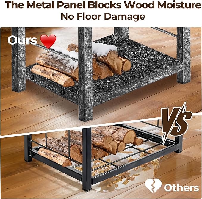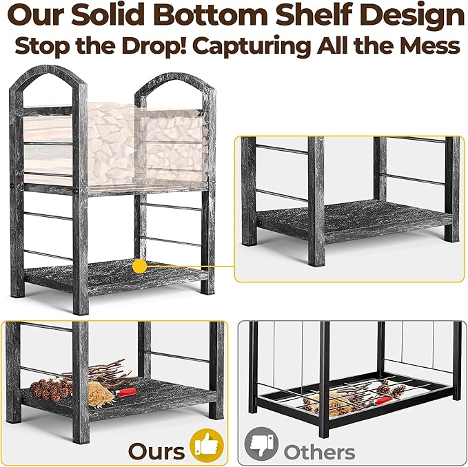 - QUALITY & LARGE CAPACITY: Designed with 2 storage shelves. The log rack frame measures 29.1inx15.7inx11.8in, made from durable steel square tubing and powder coated finish to ensure its durability and strength. The significant metal stand forms a sturdy frame, with plenty of room on the 15.7inch by 11.8inch square base to accommodate your firewood. The whole set is made of high quality, premium and high dense material to ensure a high-end using experience.