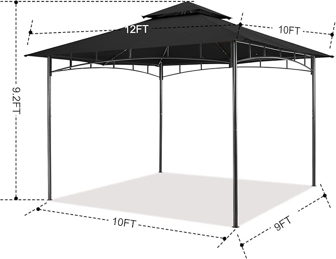- ✅Bigger Shade: 10 x 12 x 9.2 ft. The frame is 10x9 but the top is 10x12, which provides 120 sq ft shade for 6-10 people to enjoy outdoor events.