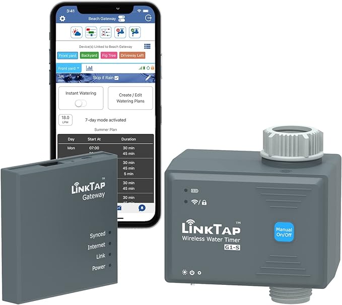 - Reduce Waste: The LinkTap G1S automatic water timer lets you schedule watering times while taking weather conditions into account. Enjoy lower water bills and healthier plants by using only as much water as you need