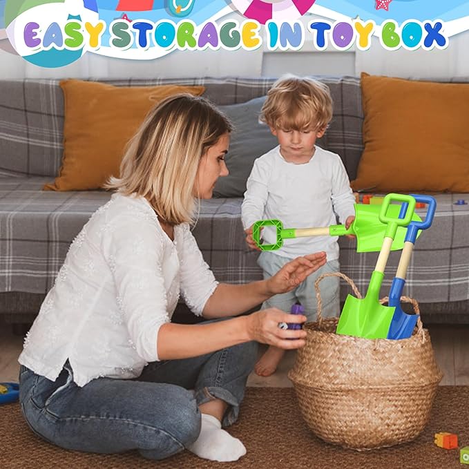 - High-Quality Materials: Brighten outdoor adventures with non-toxic, BPA-free shovels in green, ocean blue, and red. Rounded edges and splinter-free design meet child safety standards, ideal for ages 3+ to explore beaches, snow forts, or backyard mud kitchens.
