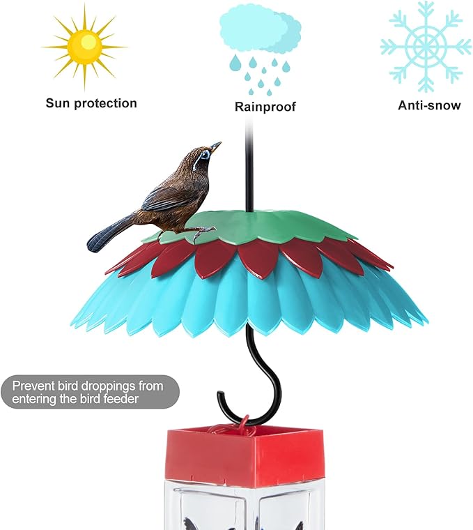 8" Bird Feeder Cover with Ant Moat, Skaithee Bird Feeder Baffle with Hummingbird Feeder Ant Guard & Rain Guard & Shepherd Hooks, Bright Colors Attract More Birds & Anti Rain/Snow/Ants (Blue 8 inches)
