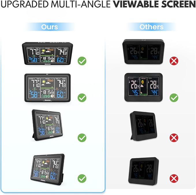 - [High Precision Home Weather Stations] Newentor adopts imported industry-leading chips and uses advanced separation technology to improve temperature accuracy, avoiding small temperature errors caused by screen heating in traditional processes.