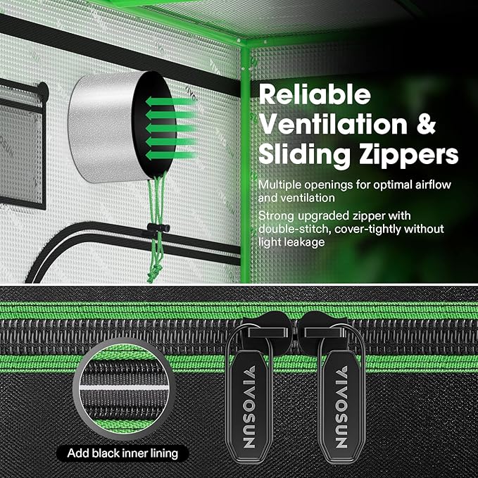 - Promote Plant Growth: Vivosun grow tents are equipped with a lined zipper double stitched to prevent light leaks; made of 100% reflective mylar to ensure plants fully absorb lights’ nutrients and energy