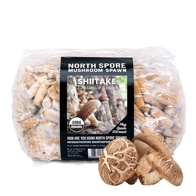 North Spore Organic Shiitake (500 ct) Mushroom Plugs for Logs | Premium Quality Mushroom Plug Spawn | Handmade in Maine, USA | Grow Gourmet Mushrooms Outdoors on Logs | Lentinula edodes