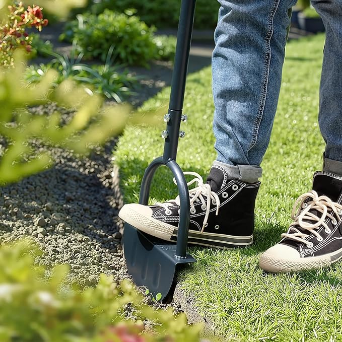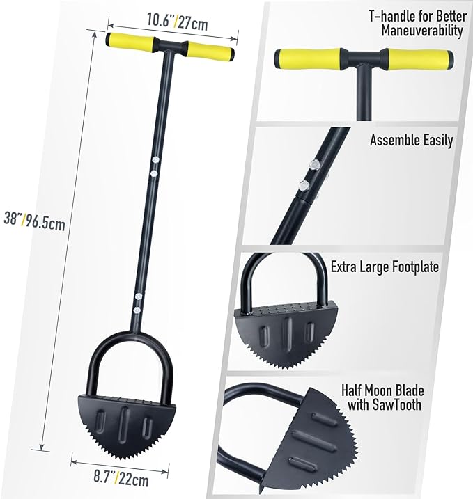 - SAVES YOUR BACK & KNEES -- 39" edger lawn tool with long handle, lets you edging without having to bend over or go down to your knees. T-handle with soft cushion for comfort & better maneuverability.