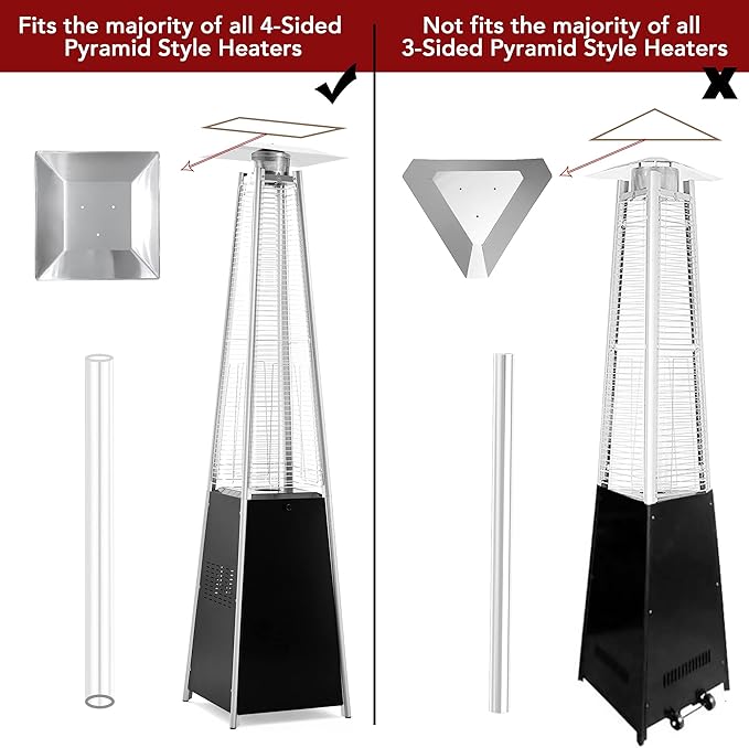 - 【Size】It is 49.5 inches high and 4 inches in diameter. It is the best replacement for Pyramid Heater. Suitable for all 4-sided pyramid outdoor heaters about 89.4 inches high (not applicable to 91 inches high 3-sided heaters).