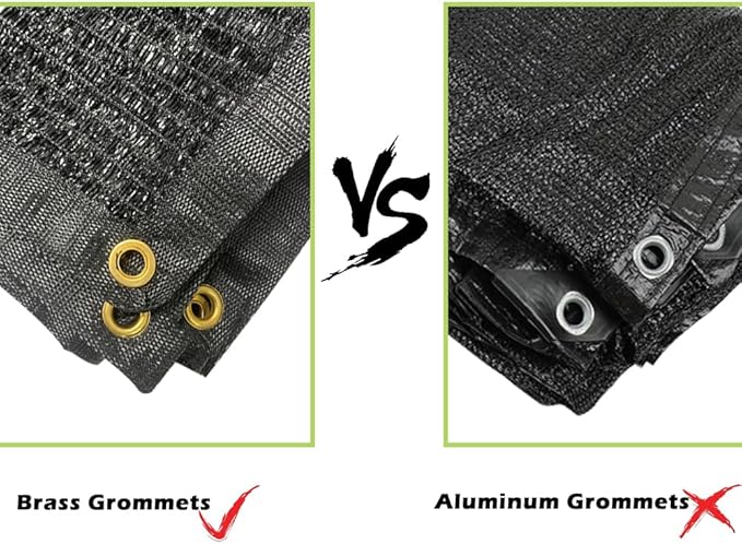 - Brass Grommets for Secure Installation: Our sunblock shade cloth features durable grommets spaced every 20 inches along reinforced edges, allowing for easy, secure attachment without risk of tearing. Equipped with high-quality brass grommets, it resists rust and deformation, providing reliable and long-lasting installation with ropes, bungees, or wires