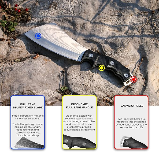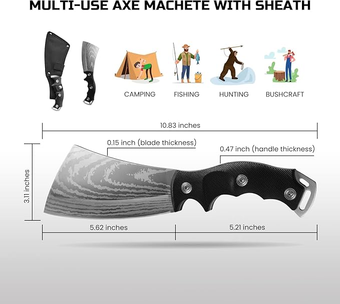 - AXE MACHETE -- Uniquely designed axe machete features sturdy, capable, and effortless, great for camping, fishing, hunting, and bushcraft project.