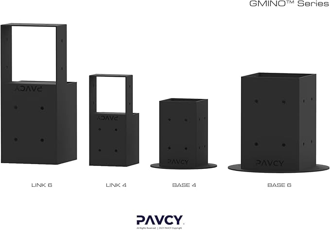 - Quick + Versatile Pergola Brackets - The GMINO LINK pergola kit offers unmatched ease for fun and effortless DIY projects. Build your pergola, gazebo, carport, fence, or deck railing using standard 4x4 posts or 6x6 posts available on the market. Perfect for beginners and pros alike.