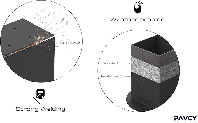- Crafted for Ultimate Strength - Made of 11-gauge (1/8-inch) carbon steel, fully edge-welded, and protected with dual-layer weatherproofing (galvanized + powder-coated finish.) These durable brackets ensure your build stands the test of time.