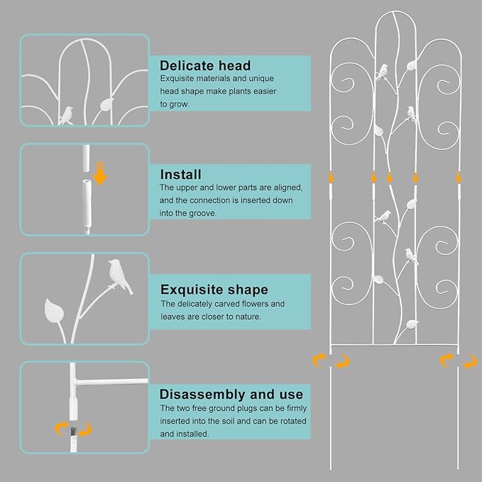 - PERFECT PLANT SUPPORT: These pack of 2 trellises for climbing plants indoor is lovely on its own and even more stunning when adorned with flowering vines or climbing roses. We designed two colors of vegetable trellis for you to choose, the black one is modern and the white one is graceful