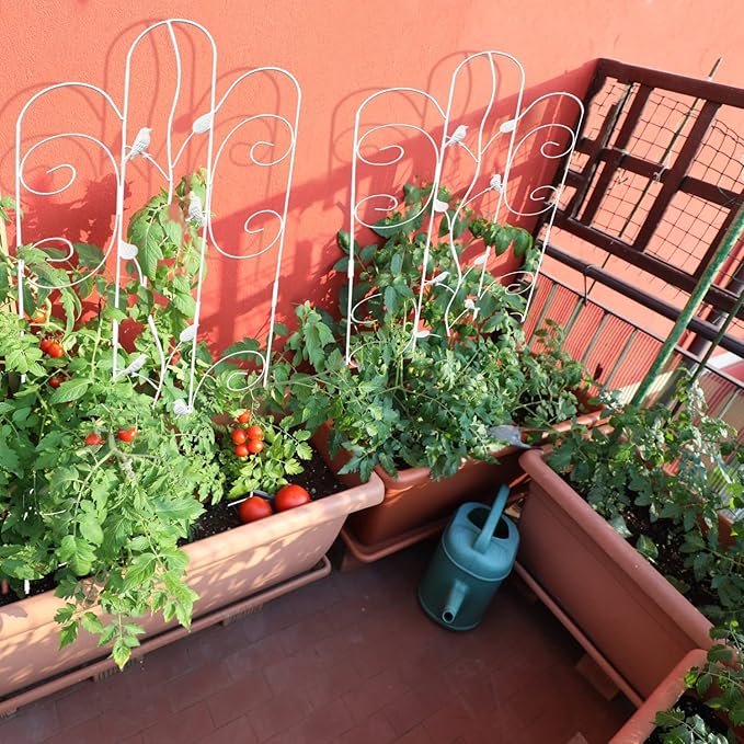 - MULTI PURPOSE METAL TRELLIS: This garden trellis for vegetables is suitable for clematis, climbing roses, vines, morning glories, beans, sweet peas, tomatoes, other vegetables, and more. You can also use bean trellis to form a sturdy screen or corner with more of it and provide support for climbing plants trellis while adding height and variety to your lovely garden