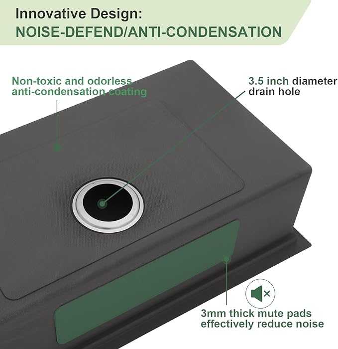 - [Exquisite Design] - The 28 Inch Drop In kitchen sink comes with an X-shaped water guide line on the bottom, which is designed to speed up draining and avoid clogging. The sink is also surrounded by a sound dampening mat that reduces the sound of water impact, keeping you happy and calm at all times