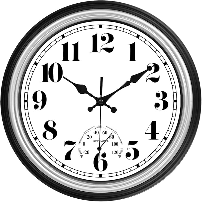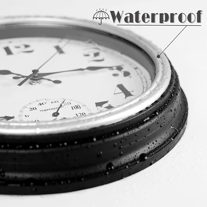 - 【Waterproof & Temperature】 You will love this outdoor wall clock with thermometer. It is waterproof and can be placed porch,patio,bathroom etc without worrying about get wet. If you are on the terrace, you can easily know the current time and temperature without going back to the house or looking at your phone.