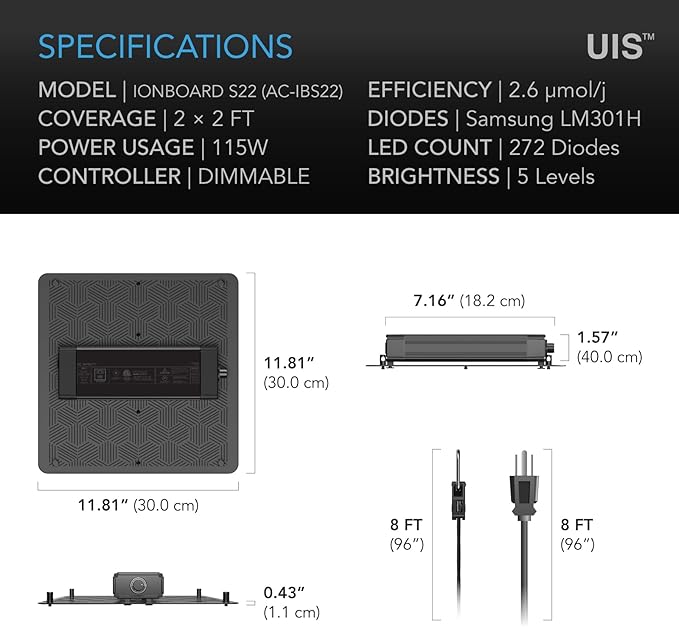 - Utilizes full-spectrum Samsung LM301H LEDs to achieve powerful lighting optimized for all plant stages.