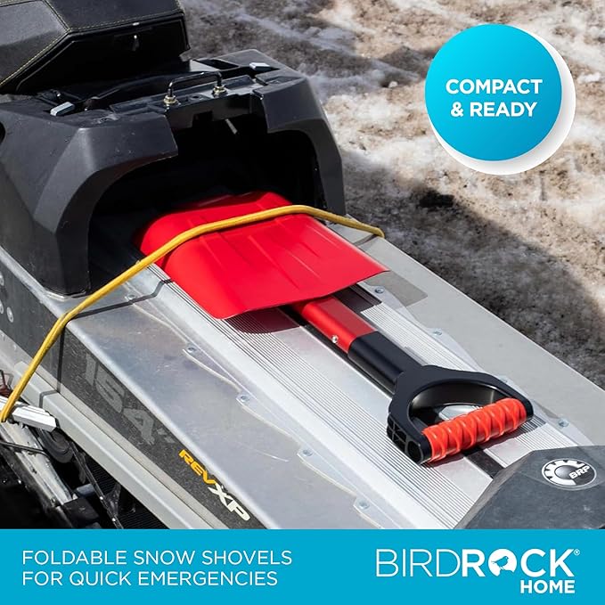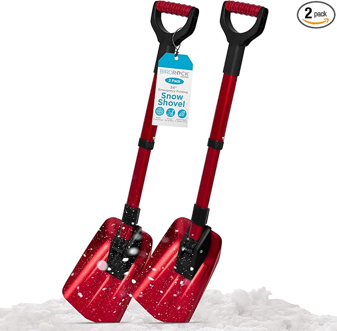 BIRDROCK HOME Folding Emergency Snow Shovel - Compact Tool for Winter Survival, Car, Snowmobiles, ATV - Lightweight Collapsible Gear for Skiing, Camping, Mud, Avalanche, Sand, Adventure - 34”, 2 Pack