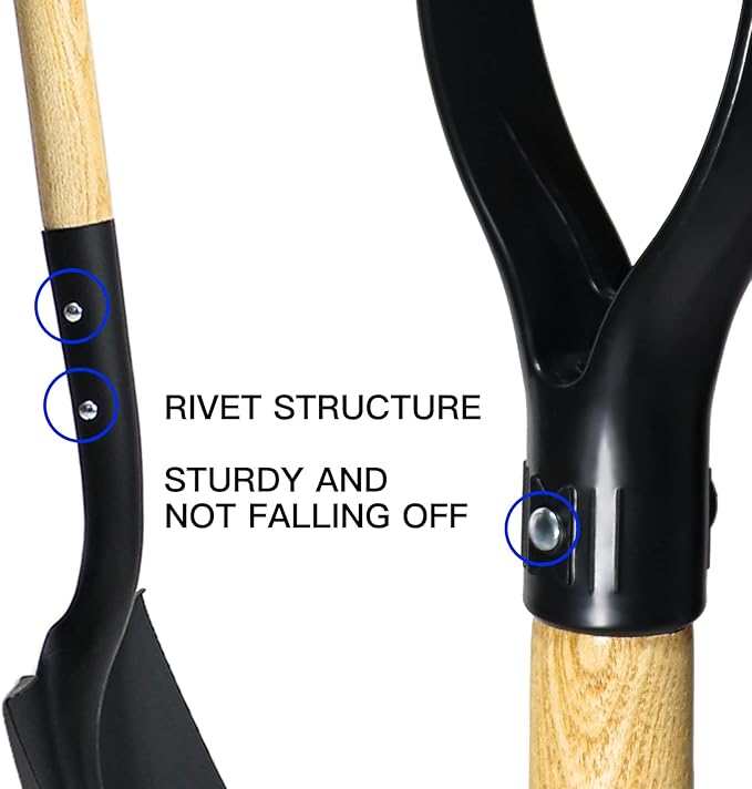 - 【3.3 pounds】This shovel is light weight, handle comfortable, The pure solid wood handle is more environmentally friendly and will not to twist.The scoop is able to take quite a load, Shoveled dirt,gravel, and picked up yard trimmings The balance is fine.