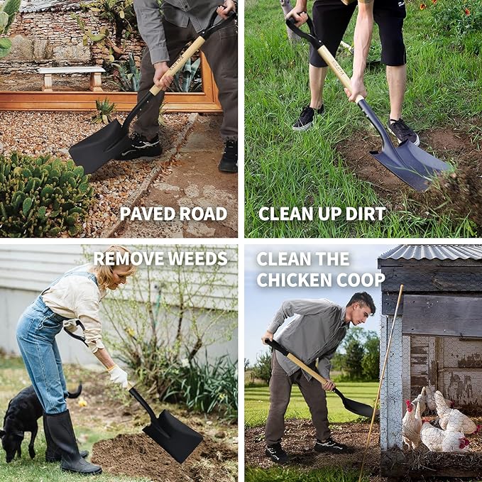 - 【multiple uses】Perfect for cleaning out chicken coop,remove some dirt in you yard,use for edging and gardening,Transfer gravel.Great for shoveling stone off a flat surface and removing ice from the driveway in winter.