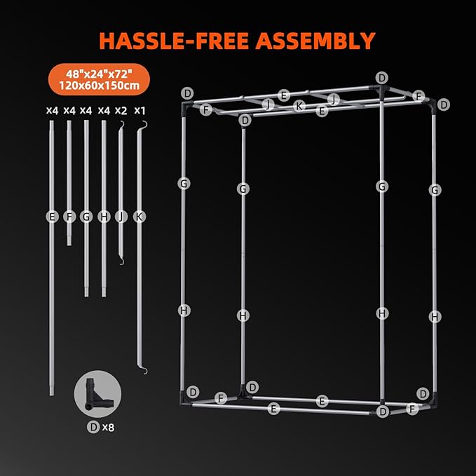 - TOOL-FREE SETUP IN MINUTES: Connect the metal frame to the corner adapter, pull the tent on, add the floor tray and hanging bars, and start growing faster with ultra-stable construction