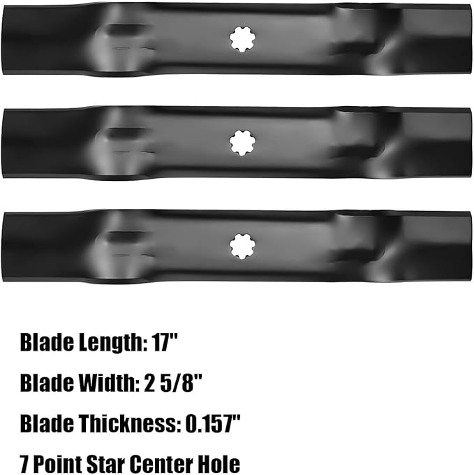 - (3) Blade (Length 17" X 7 Point Star) Replaces for John Deere AM141035, GX21784, GY20852