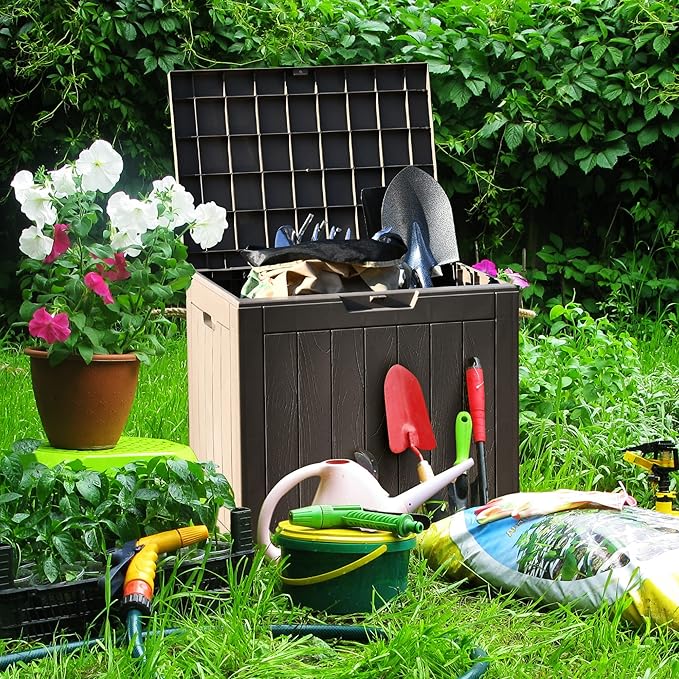 - DESIGNED FOR CONVENIENCE- Our deck box has built-in handles on both sides for convenient lifting and movement; Add a combination lock/padlock (not included) to the top lid to offer extra security.