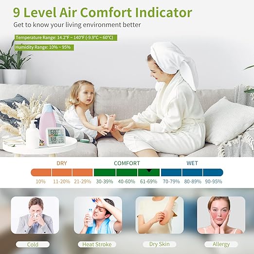 - For a Healthier Home - Designed for indoor use, with sensor range of 14.2°F-140°F and 10%-95%RH, it is perfect for your bedroom, baby room, kitchen, office, garage, wine cellar, greenhouse, and more