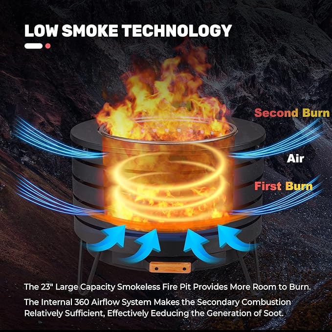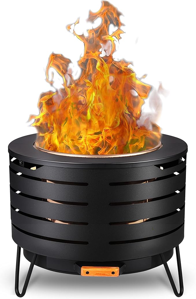 Smokeless Fire Pit, 23 Inch Fire Pit for Outside with Removable Ash Pan, Outdoor Firepit Ideal for Camping,Bonfire and Backyard, Include Fire Poker, Firepit Cover and Grill Rack